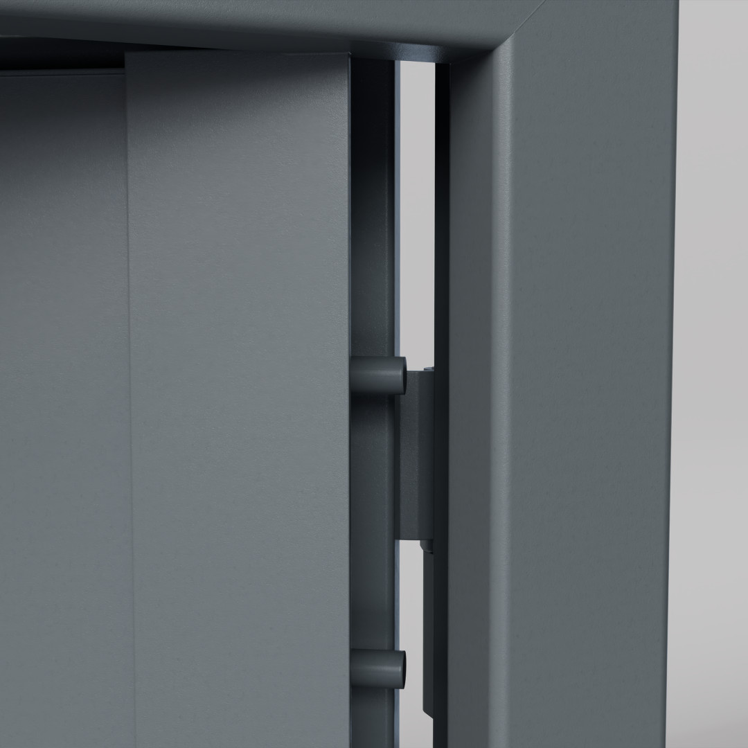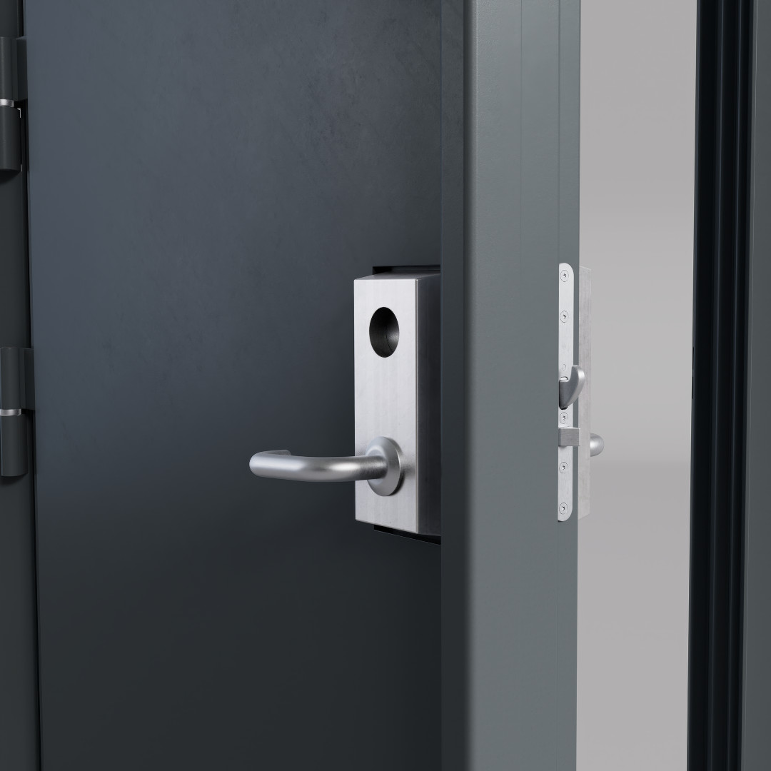 Lås: Oppfyller RC 6 med kun én lås. Leveres med mekaniske låsekasser som ASSA 510 BL eller Step H50. Døren kan også forberedes for motorlåser, som Step 500-serien eller ASSA 850. Oppfyller Grade III med én låsekasse og Grade IV med to låsekasser. For andre godkjente alternativer, ta kontakt Daloc.
